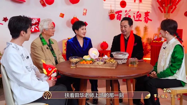 “今年,我就要97岁了,无论何时何地,我永远是党的女儿。”与实力派演员刘劲、青年演员王俊凯手拉手走上舞台的田华老师精神矍铄,话语坚定地表达出对党的深情。她铿锵有力地吟诵起《咏梅》,表达了对文艺事业的美好祝福。刘劲、王俊凯共同演绎了歌曲《红梅赞》。刘劲老师做客“文艺家”,与我们分享了他激动的心路历程,他觉得百花迎春的舞台,不仅仅是一场文艺的盛宴,有田华老师作为老一辈的“人民艺术家”,有刘劲、张凯丽等处于中间代的优秀演员们,有王俊凯、李庚希等优秀青年演员们,《红梅赞》这首歌,不仅是对经典的传承与致敬,更是文艺界老中青三代传承精神的生动写照。这是一首属于青春的赞歌,激励着一代又一代的年轻人,为了理想奋勇前行,为了祖国的繁荣富强贡献自己的力量。