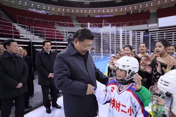 2017年2月24日,习近平总书记来到承办北京冬奥会冰球比赛的五棵松体育中心。在观看青少年冰球训练和队列滑表演后,他向小队员们回忆道,小时候冬天只能在什刹海的冰面上滑。如果能买一双50元的冰鞋,就算是奢侈品了。弟弟喜欢打冰球,所以想买球刀鞋,而喜欢滑冰的他则想买速滑鞋,但家里只能买一双冰鞋,于是就把买冰鞋的“指标”让给了弟弟。习近平总书记叮嘱孩子们珍惜现在的条件,通过参与运动,锻炼和培养坚强的性格。