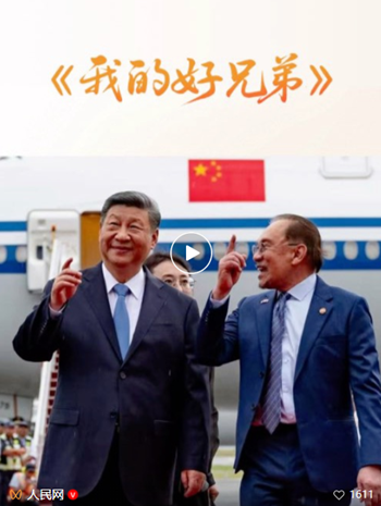 2013年、2025年两次访马,习近平主席都引用马来谚语“切水不断”来形容中马情谊。情谊浓浓,安瓦尔总理全程陪同习近平主席访马期间所有活动。每一场,他都第一时间在社交媒体发布消息并配上一首中文歌曲。在机场迎接习近平主席,选的是《我的好兄弟》。