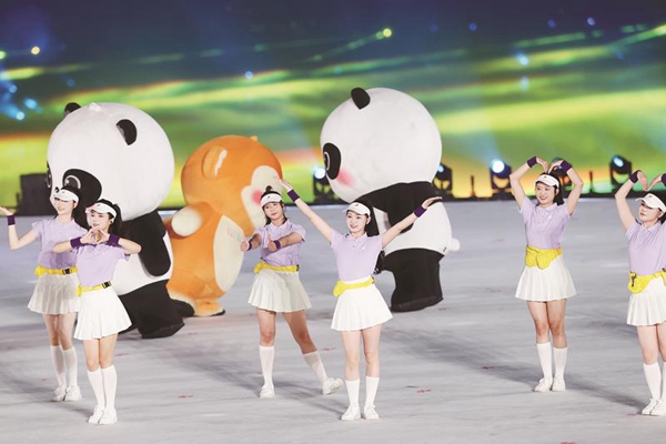 8月7日,第12届世界运动会开幕式在四川成都举行。图为演员在开幕式上表演。中新社记者 张 浪 摄