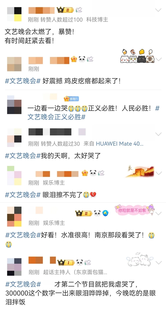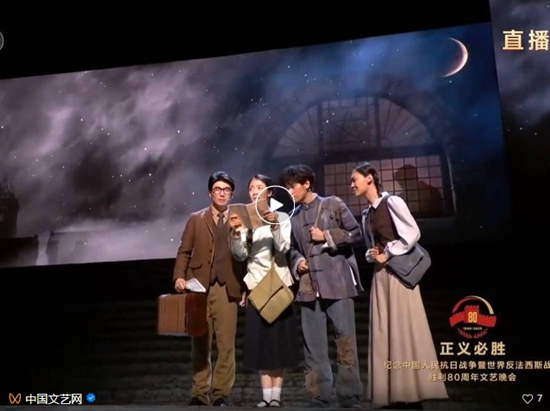 郭京飞、罗晋、刘昊然、吴越、吴樾、胡先煦、雷佳音、刘敏涛、宋春丽、张志坚、王雷、殷秀梅等文艺工作者次第出现在文艺晚会的镜头中。
