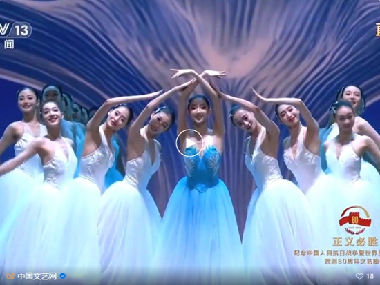 舞剧编导周莉亚、韩真担任了此次《正义必胜》文艺晚会的总导演,两人是舞蹈诗剧《只此青绿》、舞剧《永不消逝的电波》《杜甫》《咏春》的导演,是国内当代舞剧界名副其实的“舞坛双子星”。在《正义必胜》文艺晚会中,两人鲜明的舞剧美学再次呈现。