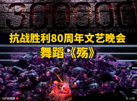 “哥哥!”随着舞蹈《殇》中妹妹的一句凄厉的呼喊,哥哥在枪声中倒地。“300000”的醒目大字,铭刻着全体中华儿女无比沉痛的一段集体记忆↓