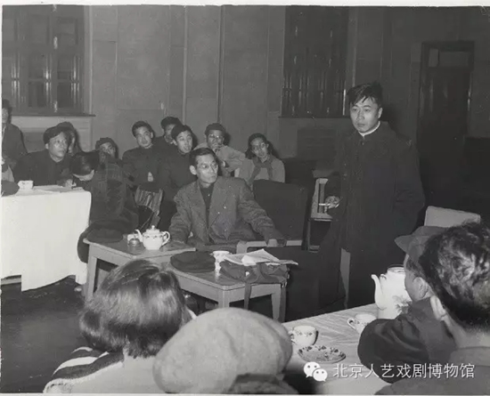 焦菊隐和《智取威虎山》剧组成员听原著《林海雪原》作者曲波分析人物性格。