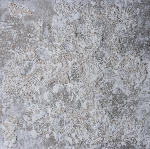 作品运用矿物色粉颗粒、胶、棉线等材料制造独特的画面肌理,意象描绘被白雪覆盖的古都北京的苍茫大地,体现作为双奥运城市的北京大国首都的魅力与气魄。