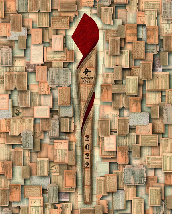作品围绕2022北京冬奥会火炬形象进行创作,奥运圣火把人们凝聚在一起,在黑暗中带来光明,在迷途中指明方向,给人以希望和勇气。
