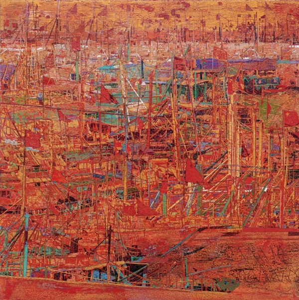 表现闽南沿海每年八月的传统海上竞技活动——开海的壮观场面,千帆竞渡,整装待发,展现闽南沿海的繁荣富庶和人民昂扬奋进的精神。