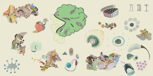 作品借用水墨绘画风格,表现生命体千变万化、繁衍生息的状态。观众可以通过肢体动作与影像产生互动,获得视觉、听觉、触觉的沉浸式多维感官体验。