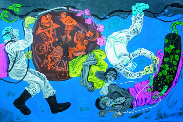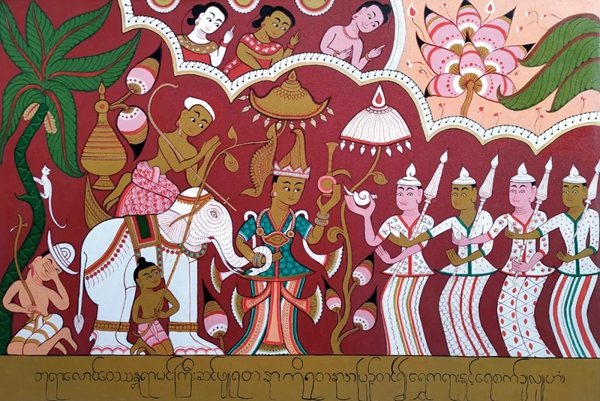 作品结合了作者自己的创意与缅甸传统绘画风格,表现缅甸民族传统。