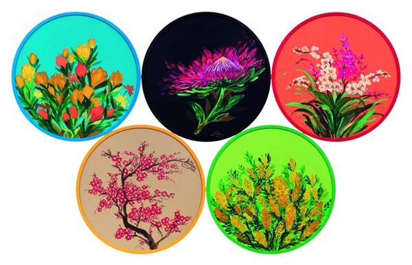 创作者用中国的传统笔法和鲜活的色彩描绘了五大洲的代表性花卉。其中,郁金香象征荣耀和友谊,帝王花象征完美和胜利,鸽子兰象征和平和统一,梅花象征力量和优雅,合欢花象征和平和友谊。北京冬奥会点亮了生命之光,意味着和平、统一、友谊与光明。它也反映了全世界人民勠力同心、抗击疫情的必胜信念。