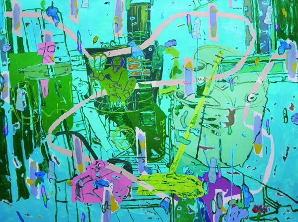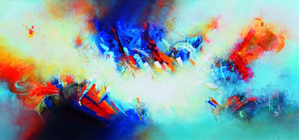 作者在平凡的元素中加入了不凡的色彩。他在作品中创建了色彩和图形之间复杂的关系。作品展现了一处虚拟的、前所未有的新风景——我们的情绪与想象世界。我们置身其间,仿若乘奔御风。