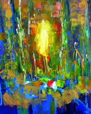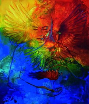 两个人之间的关系启发了这幅画的创作,作品是在画布上完成的。表现爱和灵性散发出的积极光芒。