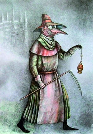 即便他们在过去是英雄……画面再现了中世纪西方防疫医生的形象。