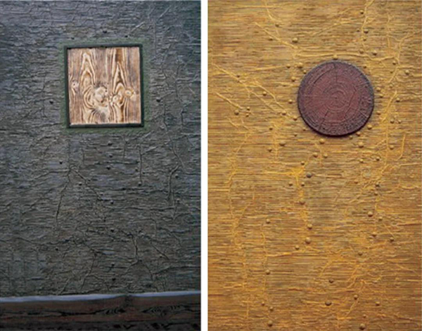 利用木板等材料的天然纹理和质感,用抽象的手法传达奥运体育赛事紧张振奋、充满活力的状态。
