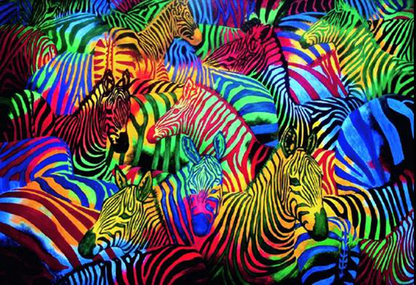 该作品象征团结,以诠释奥林匹克精神。作者选择斑马象征非洲。在这里,艺术家将原本黑白纹相间的斑马用奥林匹克五环颜色勾勒,以表现分享与宽容的理念。无论我们为何种肤色,我们都应该向其他各民族文化,各种肤色的人民敞开大门,为人类的进步做出贡献。