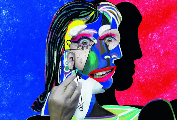 这幅作品结合了作者奥兰的脸与毕加索的朵拉·马尔和杰奎琳·罗克哭泣肖像。
