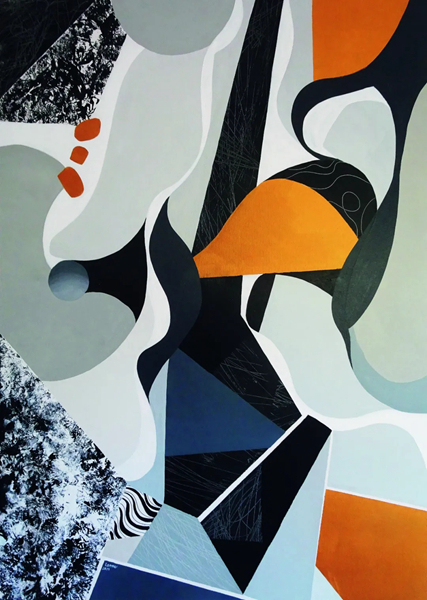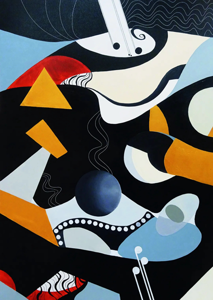 作者从追求几何形体美感的“立体派”风格样式中,寻找自己的抽象绘画语言。