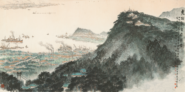 钱松岩、余彤甫、丁士青、张晋、黄养辉、张文俊、宋文治合作于南京,傅抱石题《虎踞龙盘今胜昔》 中国对外艺术展览有限公司藏