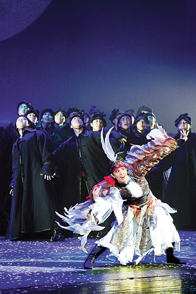 6月9日,大型民族歌舞剧《呼伦贝尔大雪原》在北京天桥剧场上演。该剧为第四届全国少数民族文艺会演参演剧目。此次会演由国家民委、文化部、国家广电总局、北京市人民政府主办,于6月7日在京拉开帷幕,将持续到7月6日,期间汇集了全国31个省区市和新疆生产建设兵团、解放军及港、澳、台的36个代表团的41台剧(节)目。 新华社记者 李京 摄
