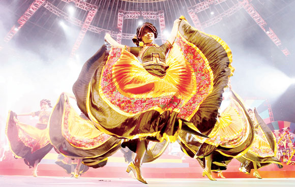 7月12日,2012伦敦奥运会中国加油主题曲《中国节拍·震动世界》全民版首发仪式在京举行。“加入中国节拍,助威2012伦敦奥运会”主题活动历时3个月,由中国奥委会和可口可乐公司共同发起。该活动征集到近2亿个“加油节拍”,并将这些承载着国人激情和创意的节拍融入加油主题曲中。图为舞蹈演员在发布仪式上表演民族舞蹈。
