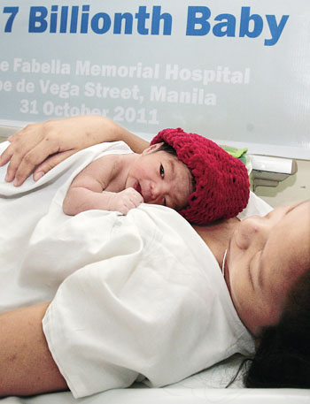 10月31日,象征世界第70亿个人的婴儿在菲律宾诞生了。虽然“70亿”是个仅具象征意义而不具统计学准确性的数字,但当这个“人口时钟”向人类敲响之时,无疑再次提醒正在享受前所未有的物质财富的人们必须直面诸多挑战。资源危机、生态危机、人口老龄化……地球家园的负荷在人口时钟的飞转中愈来愈重,人类当在警钟声中反思。
