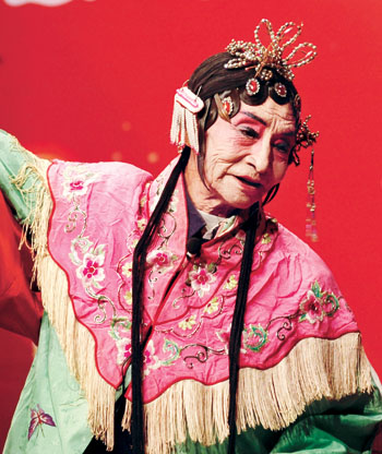 中国山东邹平县青阳镇南陈村的一位83岁的老人在进行地方戏曲的抢救演出。据中国国家人口和计划生育委员会主任李斌介绍,我国的人口老龄化具有老年人口数量多、老龄化速度快、高龄趋势明显的特点。董乃德 摄