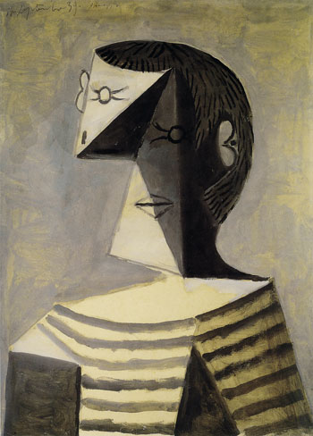 《身着条纹针织衫的男子半身像》(毕加索,1939年)。画中条纹样式成为时尚元素。