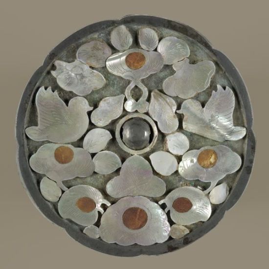 10、珍珠母嵌花青铜镜 来自中国,唐朝,公元8-9世纪。