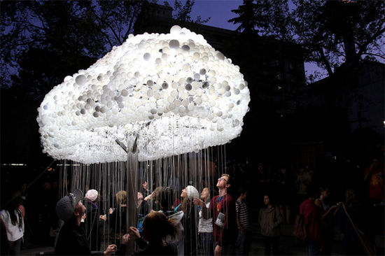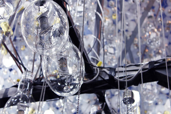 艺术家Caitlind r.c. Brown在加拿大的艺术展中展出一件最新的“灯泡云”作品。这则作品,总计使用6000枚灯泡,其中的5000枚为民众捐献的用过的废弃灯泡!这样的造型好梦幻啊,尤其是夜晚将灯泡点亮之时!