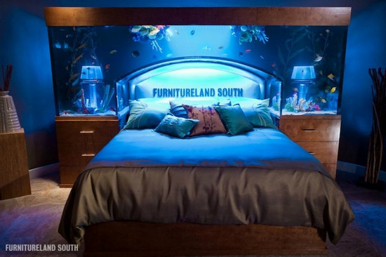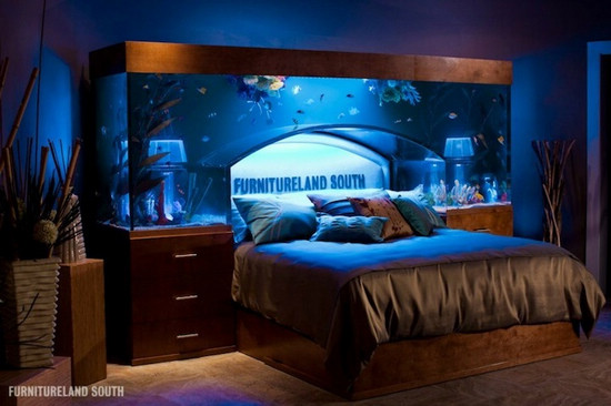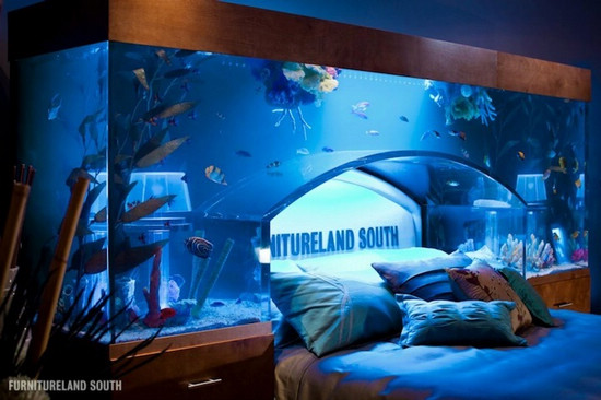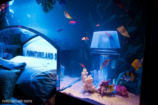 这床头柜未免太酷了吧!!!每天睁开眼就能看到欢乐的鱼儿游来游去。入睡前若要失眠,可以数鱼儿玩,就是这灯光估计对入眠光线要求高的童鞋是个挑战!