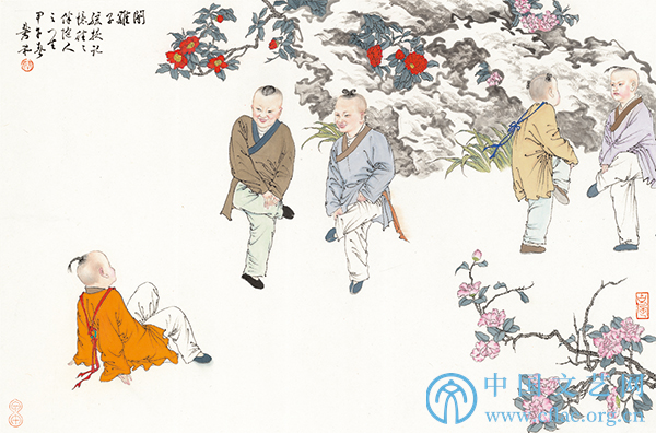 回来后,我就想着自己是否也能尝试一下画小孩。我不画“婴戏图”,我要画“童戏图”,为什么要改成童戏图呢?因为我们小时候玩过踢毽子、斗鸡子、捉迷藏、老鹰捉小鸡等一系列的游戏,中华文明是多方面组成的,儿童游戏也是中华文明的组成部分。我想画的中国儿童游戏大概有五六十种,这些游戏都是在1000多年前甚至几百年前产生在中国这块土壤上的,是中国土生土长的,是中华文明的一个组成部分。这些文明经历几百年的大浪淘沙,到现在我们再来看,还是非常有益的。尤其现在儿童大多喜欢用手机、游戏机等电子产品玩电子游戏,长期沉迷在虚拟世界里面,这不但对儿童的身体发育不利,还会让儿童的心理逐渐有自闭的倾向。回想这些传统游戏,益智、益体,户外活动对儿童智力的发育、开发是非常有利的,同时这种游戏是多人参与,有一种合作精神,所以现在还是应该去发扬传承这种儿童游戏。