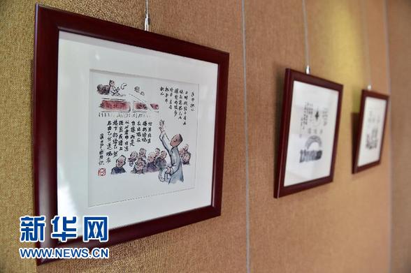 这是5月18日在展览上拍摄的李滨声老北京民俗绘画作品。当日,为期一月的“追寻北京的记忆”李滨声绘画作品展在北京西城区什刹海烟袋斜街广福观内拉开帷幕。此次展览共展出李滨声几十年间创作的近400幅北京风情漫画作品,内容涉及老北京建筑、民俗、民国文化大家的北京生活图记和京剧淡彩作品,画作中的一些京剧曲目已在舞台上消失。 新华社记者 李鑫