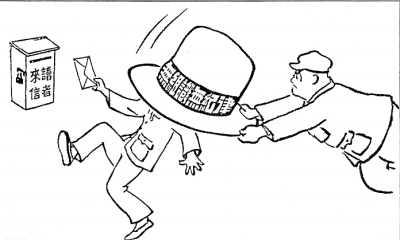李滨声漫画作品《扣帽子》(转自光明日报)