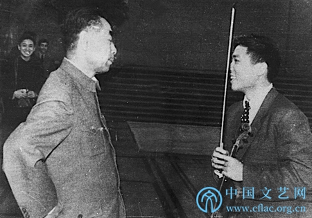 1961年,林耀基(右)在中国驻苏联大使馆演出后,受到访问苏联的周恩来总理接见