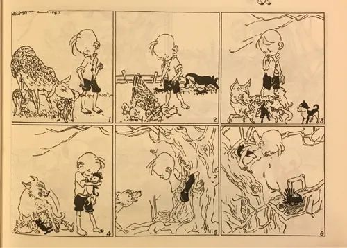 《大公报》刊登的第一幅《三毛流浪记》漫画——《孤苦伶仃》