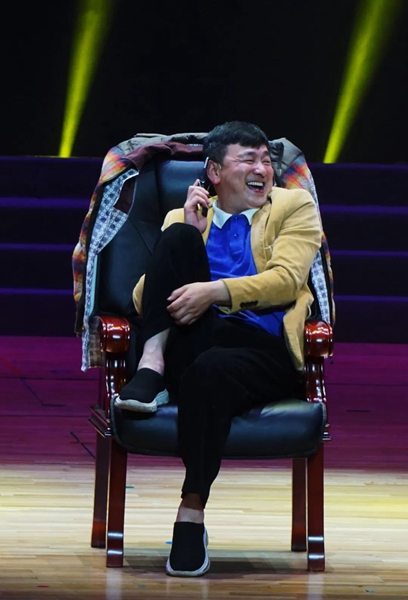 我们文艺工作者要贯彻落实习近平总书记重要讲话精神,创作出优秀的作品。曾经有一句话叫“说书唱戏劝人方”,什么叫“劝人方”?意思就是“读好书,做好人,走正道”。我们创作的曲艺作品一定要争取做到这点,还需要能引人深思,有教育意义。我们曲艺工作者要加倍努力去创作一些符合这个时代的作品,讽刺、歌颂、赞美这些都是需要的。就曲艺而言,它在某种程度上更凸显“讽刺”,才能起到引人深思的效果。这就需要我们去做一件残忍的事情,就好比一个人有些小病小痛,我们要把伤疤揭开,还要再撒点盐让他更加痛一痛,这样才会让人记忆深刻,从而去更加注意保护好自己的身体。我曾经获奖的谐剧《麻将人生》就是一个颇具讽刺意义的作品。这个作品是两段式的,一段是剧中主人公年轻时玩物丧志,沉迷于打麻将,对自己、对家庭都不负责任;另一段讲的是老了之后受到报应,既讽刺又心酸,这对年轻人就可以起到警醒和教育的作用。