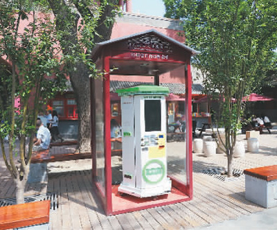 2018年5月18日,在故宫文创产品专卖店前,一款3D明信片自动售货机格外引人注目。杜建坡摄(人民视觉)