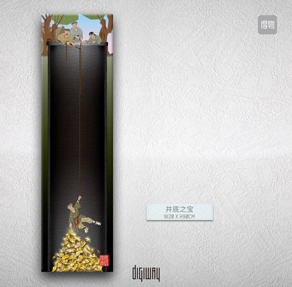 Digiway:在我看来,中国传统文化可以说涵盖了一切,其中汉语是中国文化中最有趣的部分。一个故事可以简单地用4个字,变成一个成语去表述,同时还揭示了一些有意义的道理。很多成语给我的艺术作品带来了灵感。