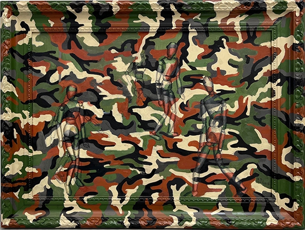 邢俊勤 迷彩纪事,93X93cm迷彩布丙烯
