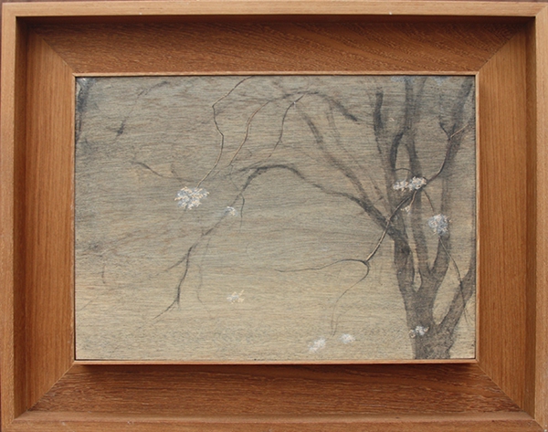 胡昌茕 《槐树的春芽》木板-矿物质色粉坦培拉-30×42cm