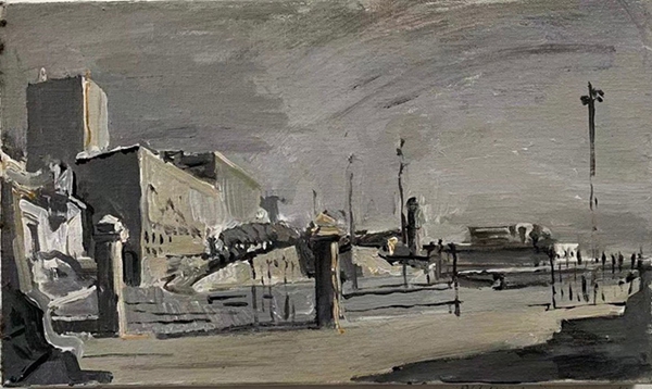 胡昌茕作品大多是写生而来,但在具象的表面样式之下却是宁静的象征主义特质。他敬意传统,并把现实景观凝固在“灰涩”的色彩体系之中,营造出理性而崇高的意境,让具象绘画衍生出抽象精神。他的画一扫浮尘燥气,朴素而真挚的笔触肌理蕴藏着沉着而涌动的视觉张力。