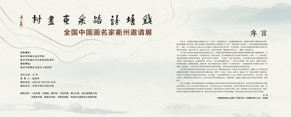 1月13日至25日,由浙江省衢州市柯城区委宣传部、衢州市柯城区文化和旅游体育局主办,衢州市柯城区沟溪乡人民政府承办的“钱塘诗路 余东画村——全国中国画名家衢州邀请展”在衢州柯城区余东·中国乡村美术馆举办。展览展出了许铁铮、吴山明、季志耀、裘缉木、朱传富、霍春阳、王天胜、汤立、高晔、戴顺智、苗再新、曾来德、范扬、张伟平、杨晓阳、林容生、周尊圣、喻建十、纪连彬、李晓军、何加林 张谷旻、卢禹舜、刘廷龙、姚大伍、方土、于文江、马锋辉、王爱宗、岳黔山、张捷、贾广健、崔进、乔宜男、杨惠东、林海钟、莫晓卫、王平、丘挺、曾三凯、崔雪涛、王少桓、贾田雪等40余位中国画名家的近百件作品。这其中既有中国美协的主席团成员的精品,也有八大美院著名画家的力作。