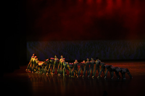 民族要复兴,乡村必振兴。党的二十大提出全面建设社会主义现代化国家,最艰巨最繁重的任务仍然在农村。展演第二篇章《风雨无阻向前行》中,《脊梁》蜕变自群众舞蹈——一根扁担的传承演变,见证的是第一书记带领乡亲们脱贫攻坚的奋斗历程;《禾梦》运用赣南采茶舞的舞蹈语汇,配合袁隆平先生祖籍地的德安号子,致敬杂交水稻之父,这位真正的耕耘者怀揣“让所有人远离饥饿”的梦想,名满天下却始终专注田畴,喜看稻菽千重浪。