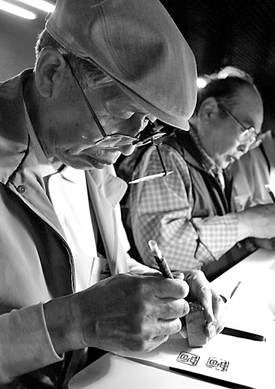 在杭州印学博物馆,三十八位来自日本的书法爱好者在学习篆刻。光明图片/视觉中国