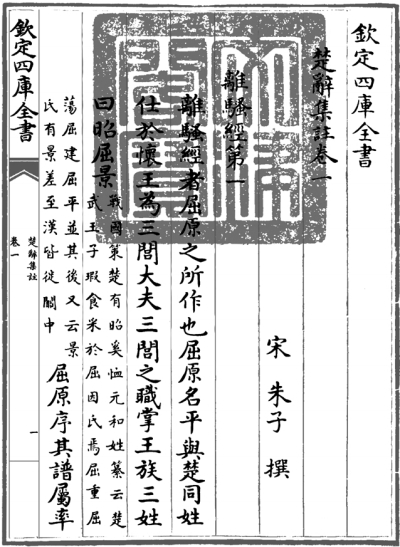 本书选编中收录了文津阁《四库全书》中《楚辞集注》八卷,未录《楚辞辩证》和《楚辞后语》,后二者内容与《集注》有重合且文学价值略逊。《楚辞集注》中朱熹共选屈原作品二十五篇,为离骚类,即一至五卷:卷一《离骚经》,卷二《九歌》,卷三《天问》,卷四《九章》,卷五《远游》《卜居》《渔父》。卷六至卷八为离骚以外篇目,冠以“续离骚”,卷六为宋玉的《九辩》,卷七为宋玉的《招魂》和景差的《大招》,卷八有贾谊的《惜誓》《吊屈原》《鵩赋》三篇及庄忌的《哀时命》和淮南小山的《招隐士》,“因意不深切,有无病呻吟之态”而删去了《七谏》《九怀》《九叹》《九思》等。《楚辞集注》在体例上,篇题下有小序,属题解,对作者、题意、写作背景等加以简明阐述;行文中多四句一章,先释词之音义,再释章之大意,是一部“注”“音”“校”“评”合一分布格局的绝佳注本,加之朱熹理学家与文学家的双重身份,《集注》中洋溢着诗学话语的美感。然而,这部成书于八百年前的《楚辞集注》对今天的读者来说,理解起来仍有一定难度:一是朱子注重于字句训诂,且切音的注音方式今已不用;二是《集注》的解说方式较为零散,且很多诗学话语是具体经验得出,这就需要读者自己厘清其话语间的内在理路,体悟出其理论意蕴,实属不易。