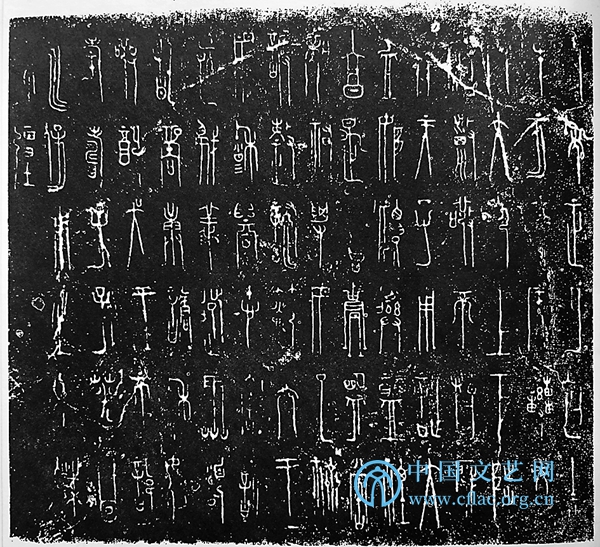 分析开来,蔡侯申盘的铭文,无疑受楚国文字及吴越文字的风格浸染。先秦古文字的大范畴内,楚系文字的装饰风尚一度呈燎原之势,而1978年出土于河南淅川下寺楚墓中的青铜器王子午鼎的84字腹铭,则堪称斯种书风的领跑者。接下来,将这种与楚国巫觋文化有着密切关联的奇诡书风作大幅度推演的还有楚王酓肯盘、王孙钟、蔡侯申盘、蔡侯朱缶、宽儿鼎等。其中,蔡侯申盘铭文结势孤直、体态纵向颀长而横向紧敛,从而呈现出矛戟森列之象。此种线条分割空间的极致手法,在我体味,实际上与人性深处的某种“孤峭”元素有关。进一步讲,由“孤峭”而衍生的岌岌可危的不安全感或曰惊恐感,有着透穿时空悬隔的巨大力量。譬如享年65岁的超现实主义雕塑家、画家贾科梅蒂,就让“二战”后弥漫于欧洲民众心头的恐惧与孤独,以幽灵般的“孤峭”造型,无助裸陈、旷世凄诉,令观者在他的雕塑作品面前,如吞鱼刺、如嚼玻璃、如卧棘丛。