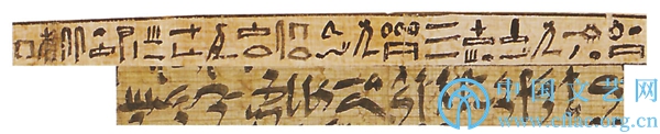 从字形的演变来看,书写在莎草纸上的圣书体仍然在尽力描摹刻绘版的象形符号。其简化版本的个别字符似乎出现腔体消失,以线条描绘“骨骼”的情况。当其进一步转化为僧侣体时,它刚长出来的“骨头”又被抽走了。此后,僧侣体便在放浪形骸的路上一去不复。不像中国文字象形、大篆、小篆、隶书、楷书、行书、草书的循序渐进,古埃及人在圣书体做到了静态的极致优雅后,超前地感应到了动态艺术呼唤,瞬间“放飞自我”。在简便快捷的道路上,纸笔齐全的古埃及人选择了一气呵成放浪形骸式的超现代艺术表达。成熟期的僧侣体,笔画极简,软而无骨,如书法草书般难以辨识。作为文字符号,僧侣体的指代信息含量大幅减少,而其表形表意功能也同步弱化。