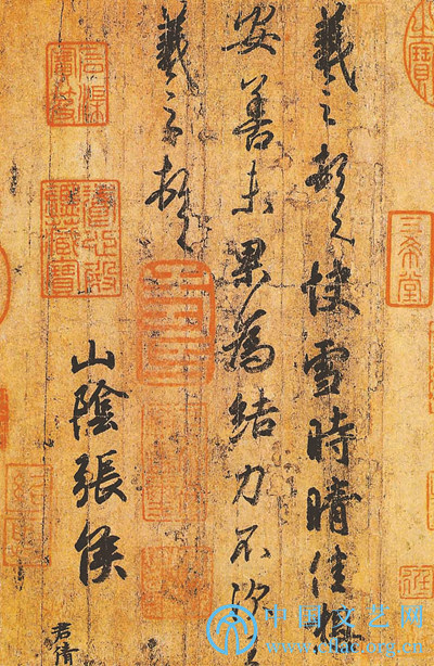当“象”“形”一经成熟,摆脱其桎梏便成为书法家追求,“形外之意”正是“韵”得以生发的基础。晋书法家既崇尚山水林风之大自然,也推崇内心率真直爽、自在自得的“绝对自由”,表现在书法上便是不刻意修为,一任笔墨自然流淌,这在酷似“草稿”或“速写体”的尺牍小品中得到充分体现。尺牍一般不预设笔法、字法、章法,大多随心架构赋形,陆机《平复帖》、王献之《廿九日帖》、王珣《伯远帖》等,用笔多按锋即下,疾驰如电,笔势环转牵引,贯通上下,字势灵动妍丽,直夺天然。对此,宋欧阳修在《集古录跋尾》中评说:“余尝喜览魏晋以来笔墨遗迹,而想前人高致也。所谓法帖者,其事率皆吊哀候病、叙睽离、通讯问,施于家人朋友之间,不过数行而已。盖其初非用意,而逸笔余兴,淋漓挥洒。”而宋朝,受时代影响,书法家总体上胸怀已没有晋俯仰自得的太虚之境,也缺乏唐立马横刀的天纵其情,更多地表现出踱步沉思的独微处幽,他们虽也崇尚自然,但视域、胸次多局限在情感、文理这一方天地中,以此来体验“意”的趣味。苏轼《答谢民师书》中说:“大略如行云流水,初无定质,但常行于所当行,常止于所不可不止,文理自然,姿态横生。”在《石苍舒醉墨堂》中又说:“我书意造本无法,点画信手烦推求。胡为议论独见假,只字片纸皆藏收。”这种“形外之意”涵泳味绵、委婉回肠,所产生的韵致更多地理解为是对唐楷书森严法度、定型程式的反叛,而落脚在满纸笔墨烟云上,少了淋漓尽致,少了惊世骇俗。
