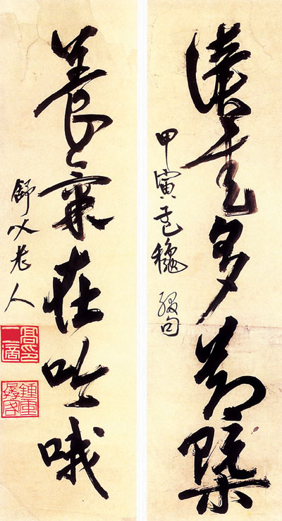 静静凝视高二适的书法遗墨,那灵异的墨线,似高猿悲叫,乱水潜奔,这是流淌在古典诗文和经典碑帖中的心灵对晤,是意与古会的神异契合。在笔力弥满、意态天矫,行气淋漓的笔势中透映出一位传统文人的自我风神。从“赴速急就称奇觚,鬼哭神惊运思初”的诗句里,流露出他作书时“笔所未到气已吐”的豪迈心象。高二适的书法意象以气势开张、书蕴“诗意”为基调,以其精湛的笔墨古法、深厚渊深的文史修养和特立高洁的文人风骨幻化熔铸,开古典主义之新境,堪称传统书法草书一脉的浪漫主义大师。
