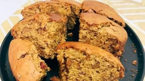 蛋糕模具中垫一层烹调纸,把枣糕糊均匀地铺在盘底;放入已预热到 170 度的烤箱中,上下火同时烘烤 40 分钟即可。